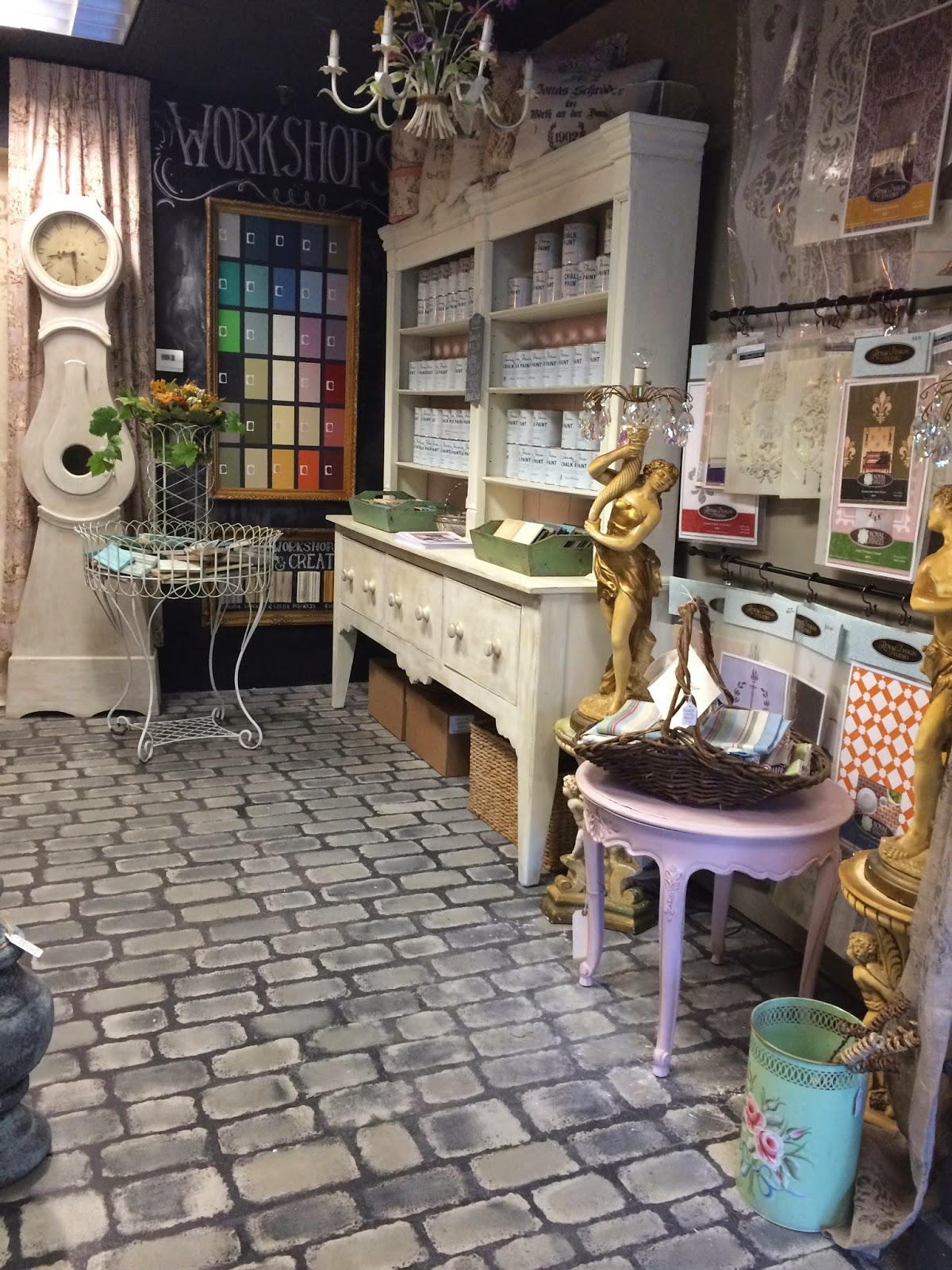 Our original antique mora stands guard next to the Chalk Paint color display.